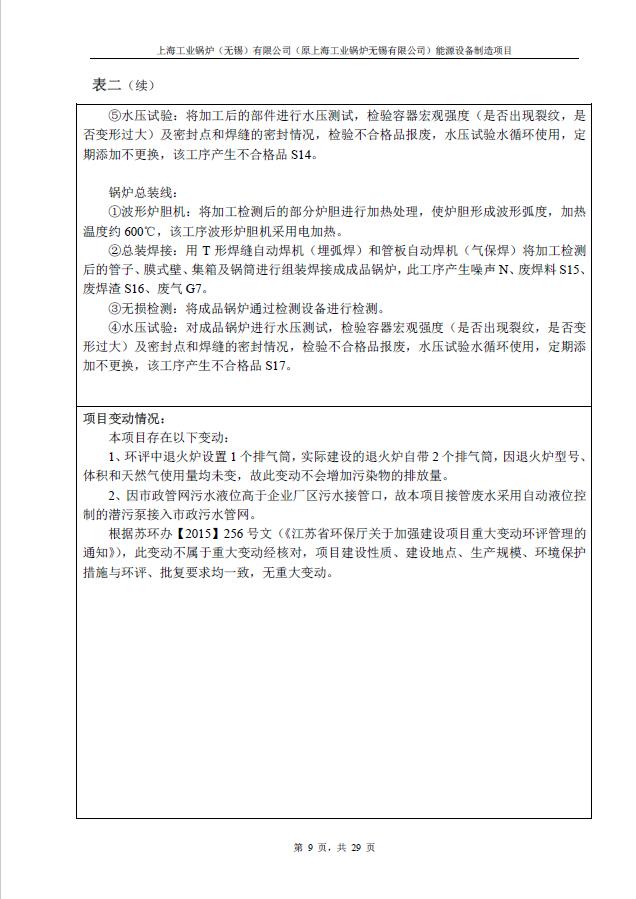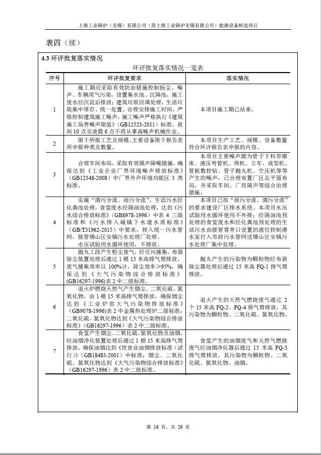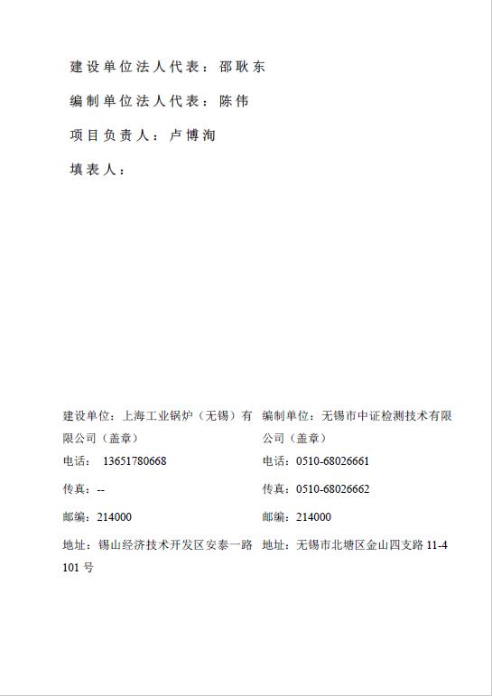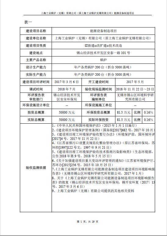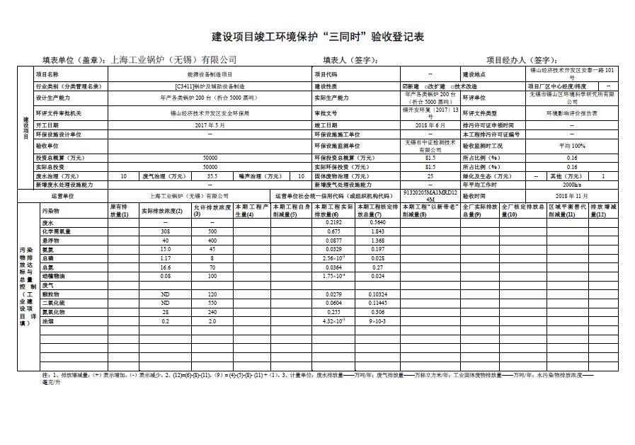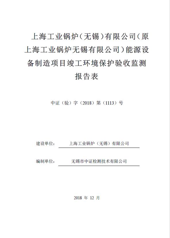 關于上海工業鍋爐(無錫)有限公司環評驗收報告公示