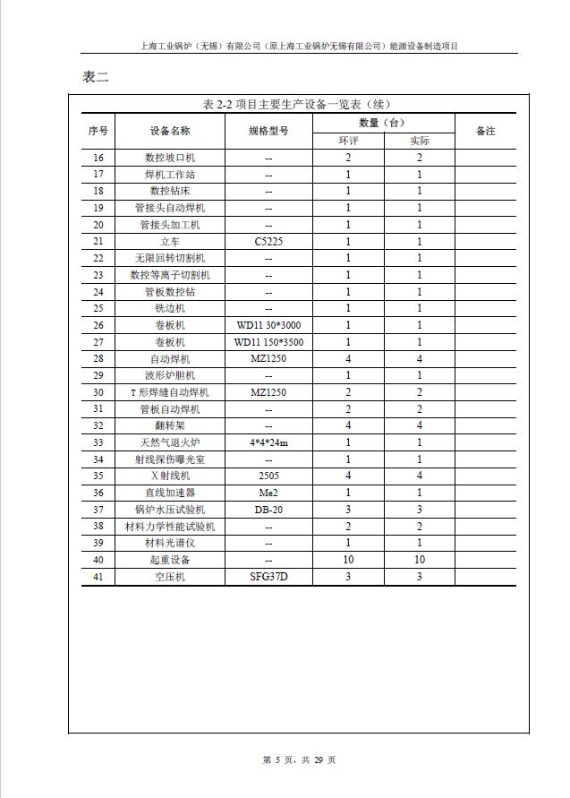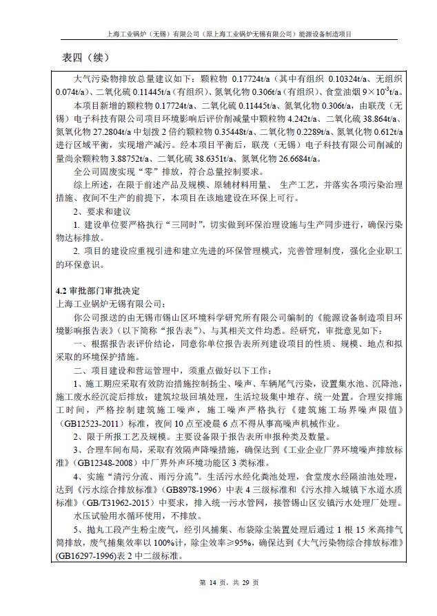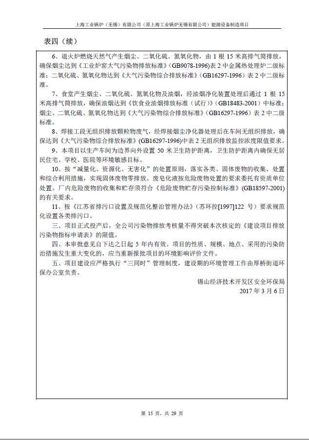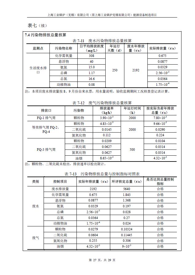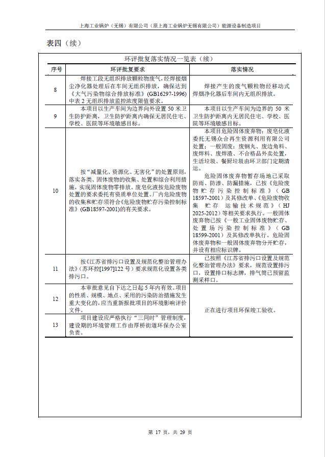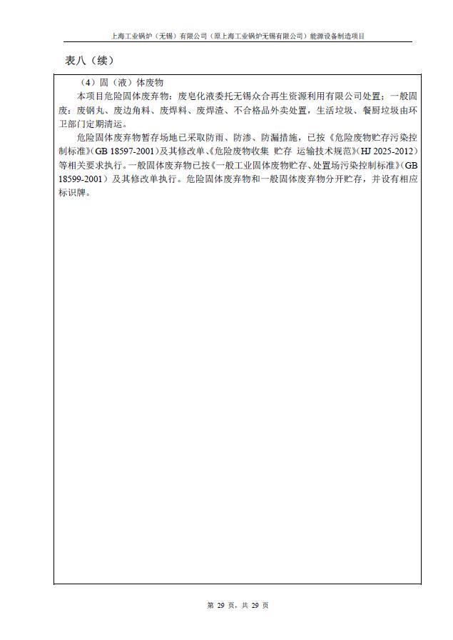 關于上海工業鍋爐(無錫)有限公司環評驗收報告公示