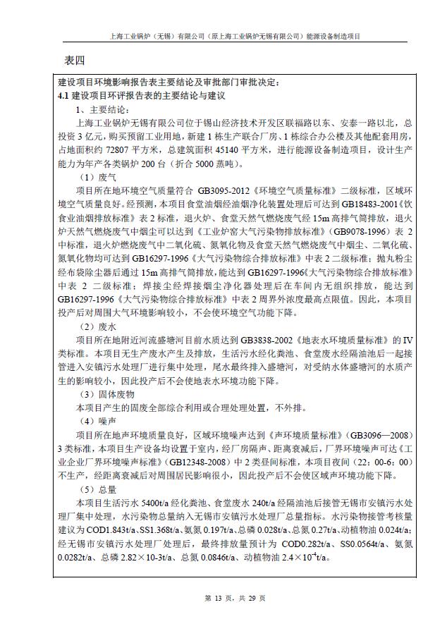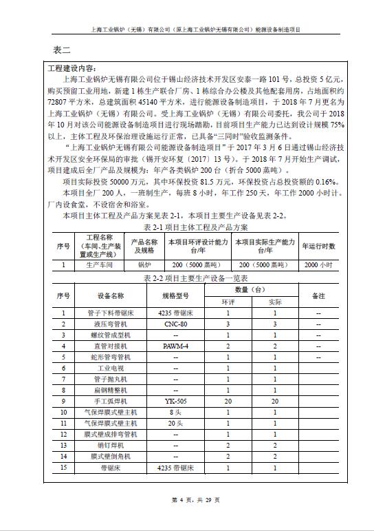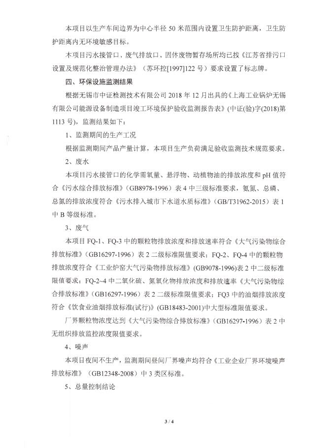 上海工業鍋爐(無錫)有限公司環評驗收報告公示