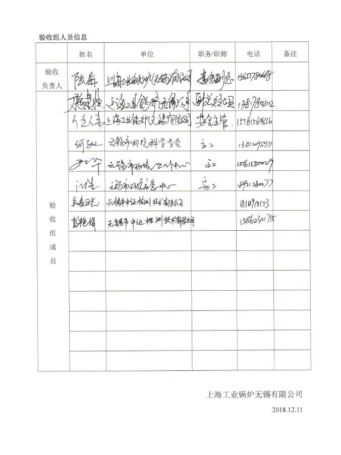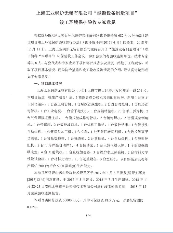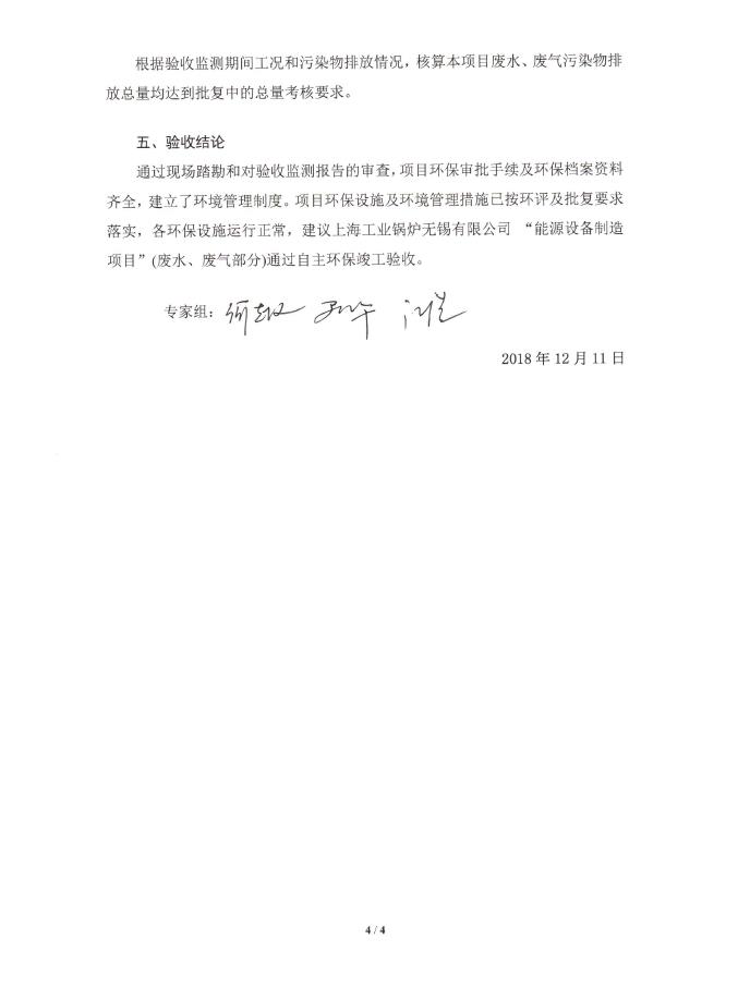 上海工業鍋爐(無錫)有限公司驗收報告